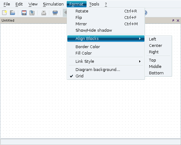 When you select several blocks, it is possible to align them vertically (Top, Bottom and Middle) and horizontally (Left, Right, Center).